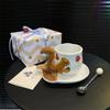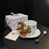 Creative 3D Squirrel Coffee Cup with Tail Handle & Acorn Saucer Set Cute Ceramic Animal Mug Novelty Gift