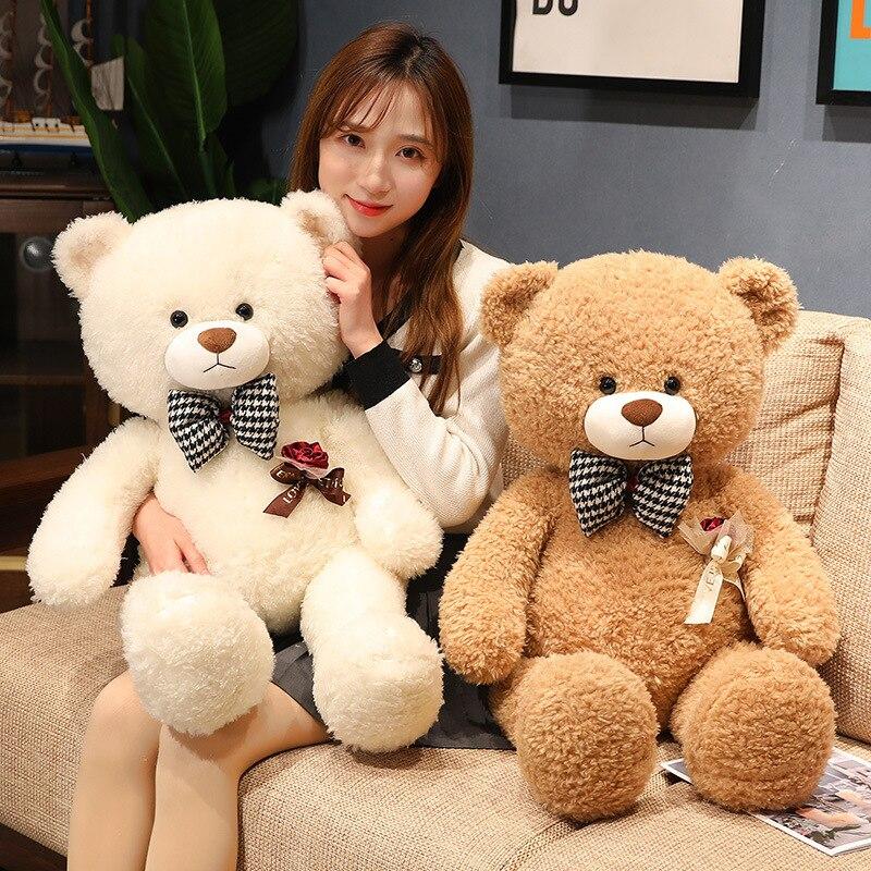 Kawaii Rose Teddy Bear Plush Pillow Stuffed Soft Curly Bow Tie Bear Plushie Toys Nice Valentine S Gift for Girlfriend