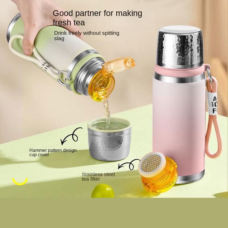 316 Термокружка для чая Женская Красивая Градиентная Легкая с ручкой Студенты На прогулку в школу Вместительный Дорожный чайник