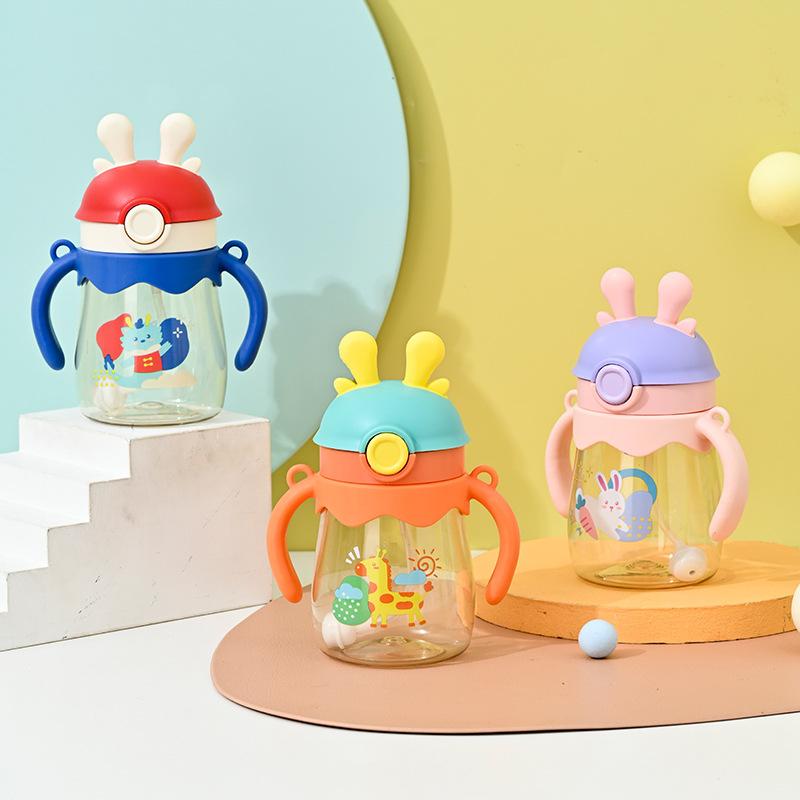 370 мл Мультяшная кружка для детей с трубочкой и ручкой для активного отдыха Легкая для переноски Пластиковый стакан Очаровательная кружка для детского сада