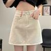 Летняя джинсовая юбка для женщин с небольшим А-силуэтом, юбка для девочек с карманами ручной работы и джинсовая юбка ручной работы