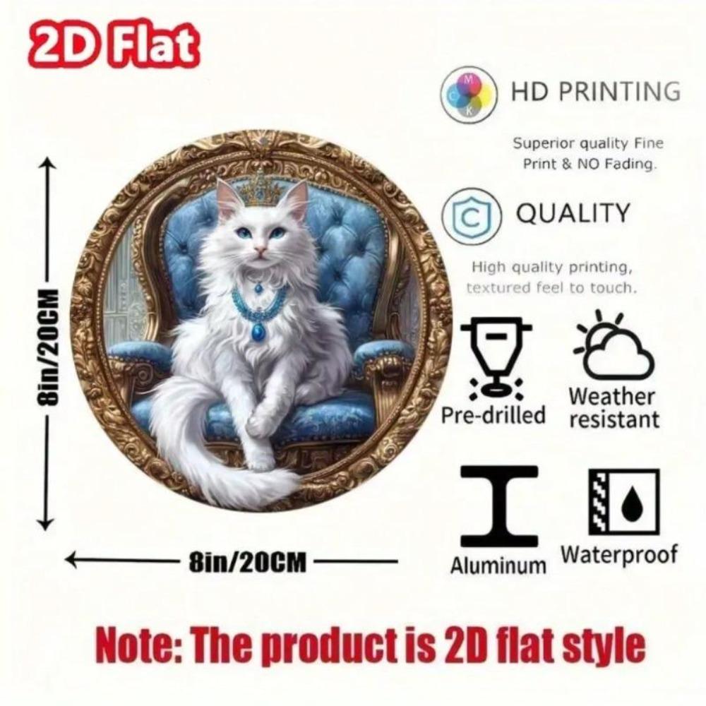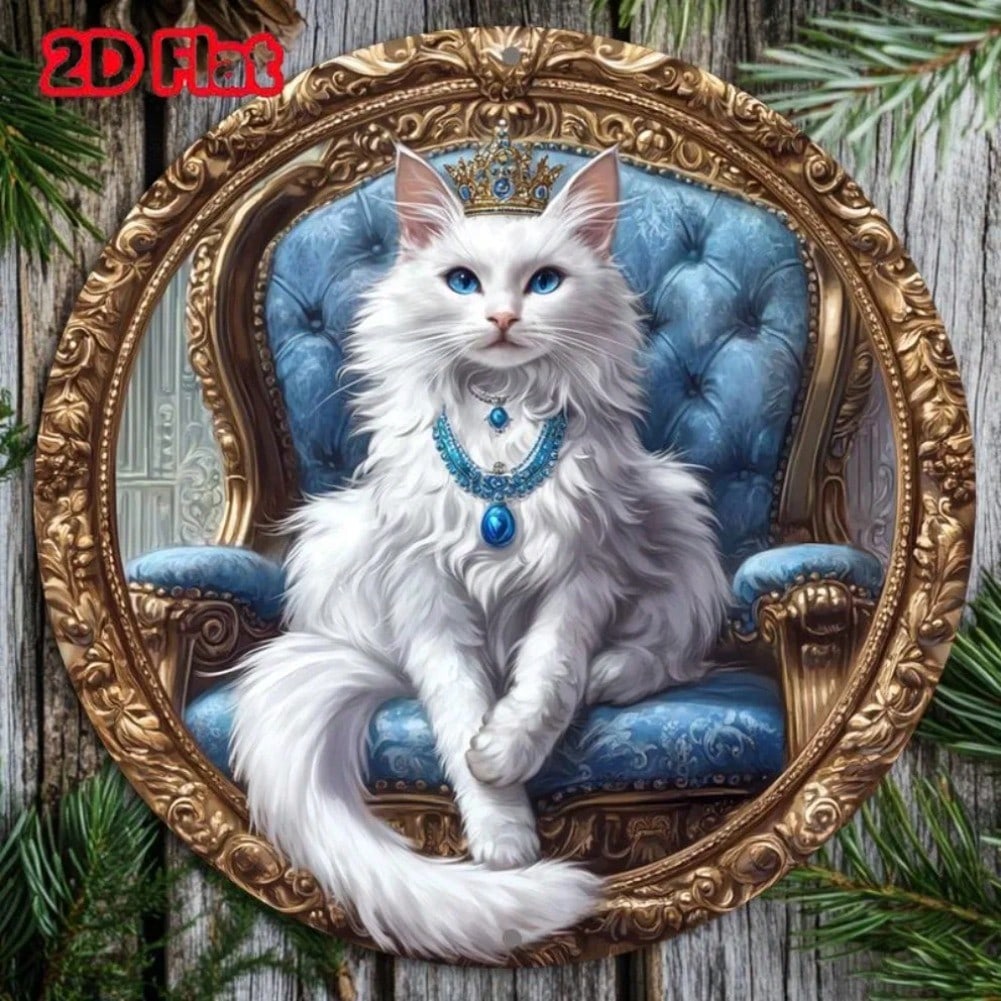 Royal Crown Cat Metal Wall Art 8x8 Inch Blue Gold Aluminum Sign