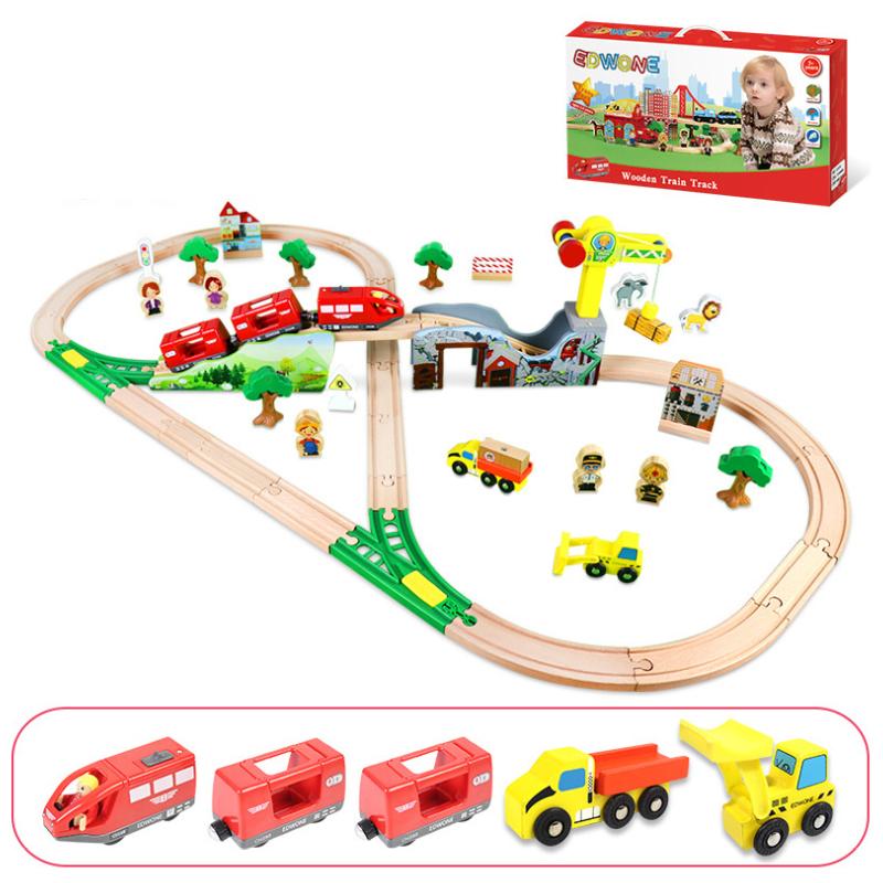 Деревянная Железная Дорога Шахта Кран Карусель Коллекция Деревянная Железная Дорога Электрический Магнитный Поезд Совместим с Деревянной Рельсой Подарок Мальчику G6