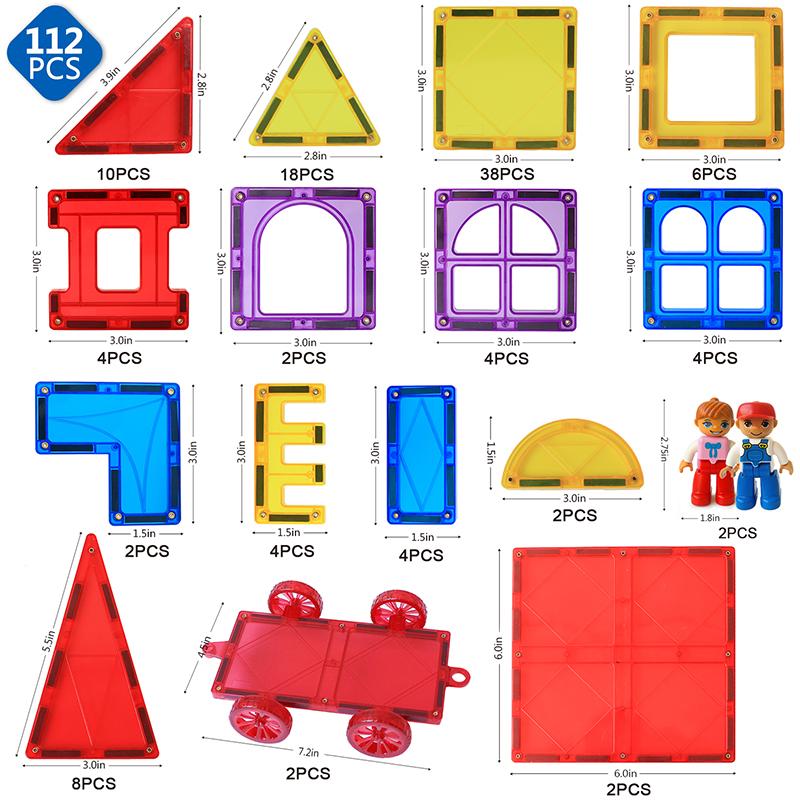 112PCS Magnetic Tiles Big Size Magnet Construction Building Blocks Collections Designer Educational Game Toys for Kids Best Gifts