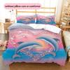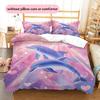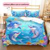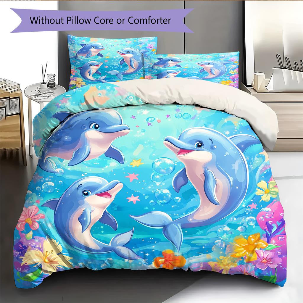 Мультяшная цветная дельфиновая постельное белье Домашний декор Подарок на день рождения (1 пододеяльник + 2 наволочки, без наполнителя)