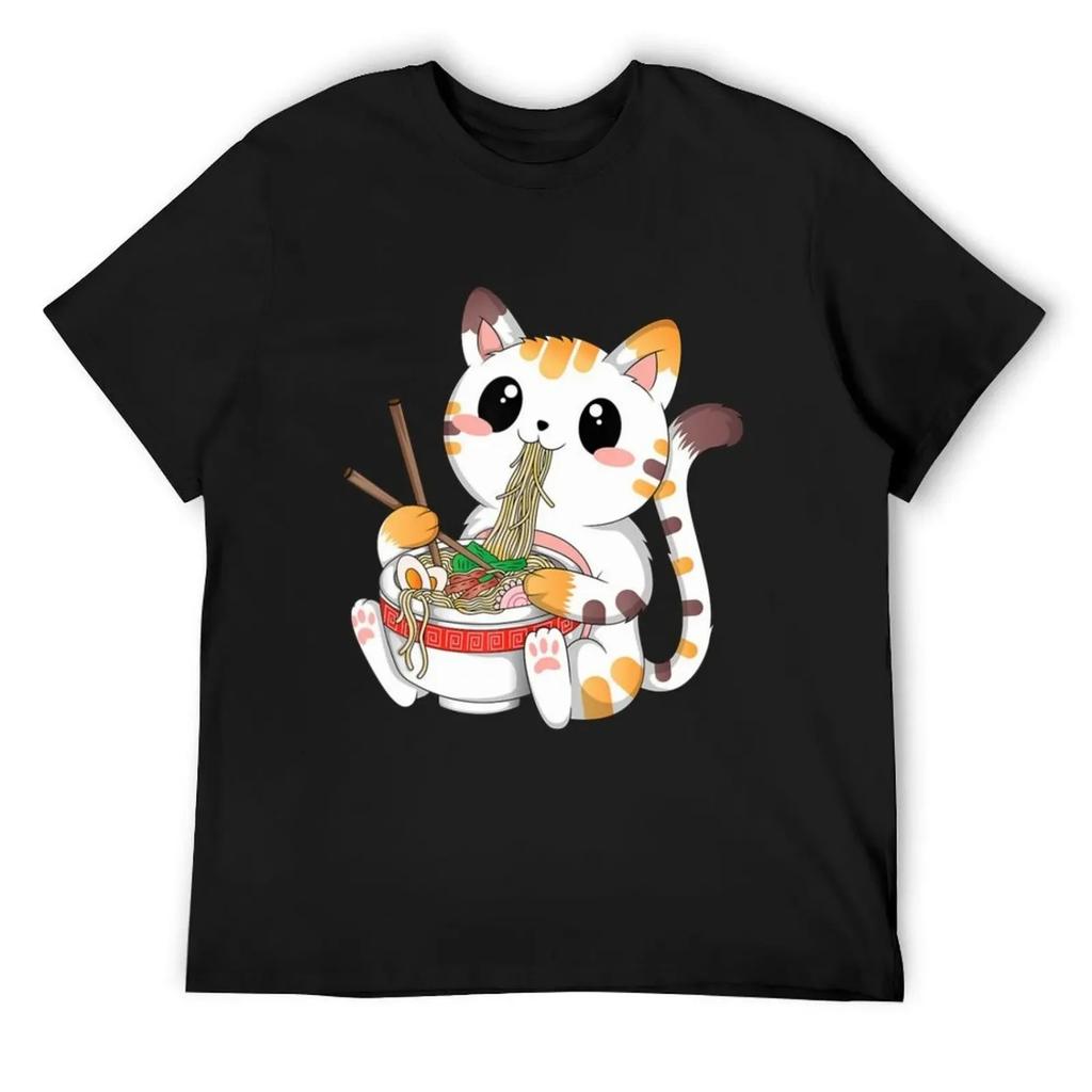 Cute Kawaii Cat Ramen Noodles Anime Neko Japanese Aesthetic T-Shirt sweat anime t shirts fruit of the loom mens t shirts