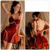 Женская прозрачная бархатная ночная рубашка Сексуальное кружевное платье для сна Глубокий V-образный вырез Открытая спина Ками-ночная сорочка
