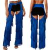 Женские Вестерн Ковбойские Штаны с Открытой Промежностью Многослойные С бахромой Без Задника Регулируемые Пряжки Вестерн Мотоциклетные Штаны для Рейвов Тематических Вечеринок Рождества