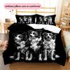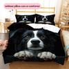 Black Border Collie Pattern Bedding Home Decoration Birthday Gift (1 * duvet cover + 2 * pillowcase, without core)