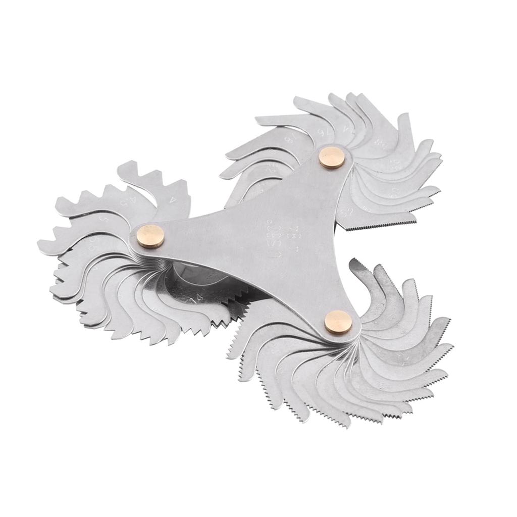 Применяется для измерения шага резьбы и наружной резьбы зубья