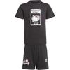 Adidas Originals X Hello Kitty Принт с буквами Мультяшный аниме-узор Круглый вырез Короткий рукав Футболка Вязаные шорты Повседневный спортивный комплект Детские комплекты Черный IR9753