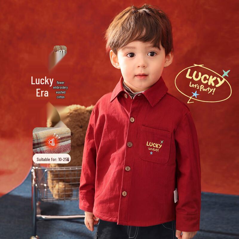 LUSON Baby Boy's Red Cotton Long-Sleeve Festive Shirt
