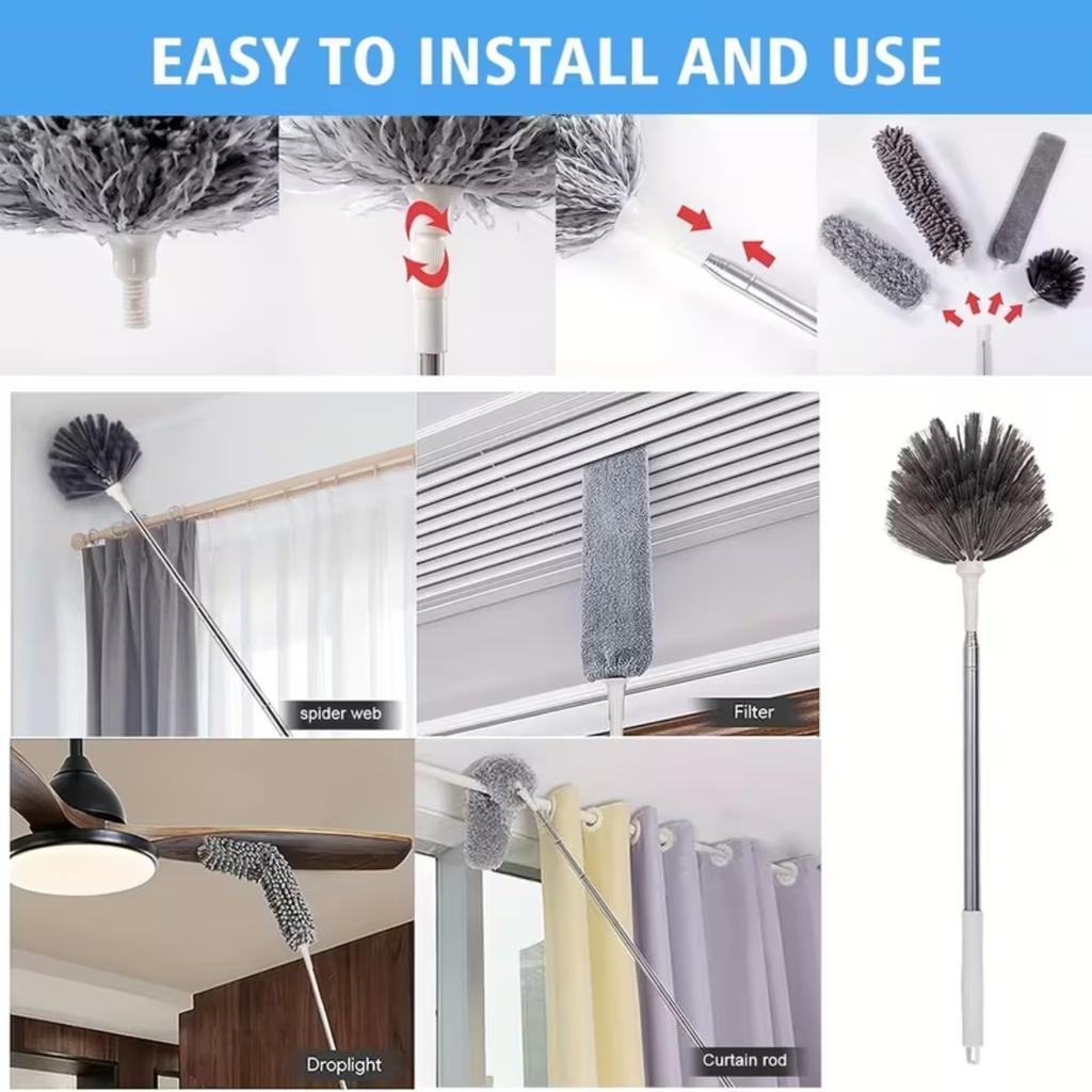 Microfiber Duster Kit with Extension Pole Retractable for Ceilings Fans Blinds Car Furniture Cobweb Cleaning Household Duster