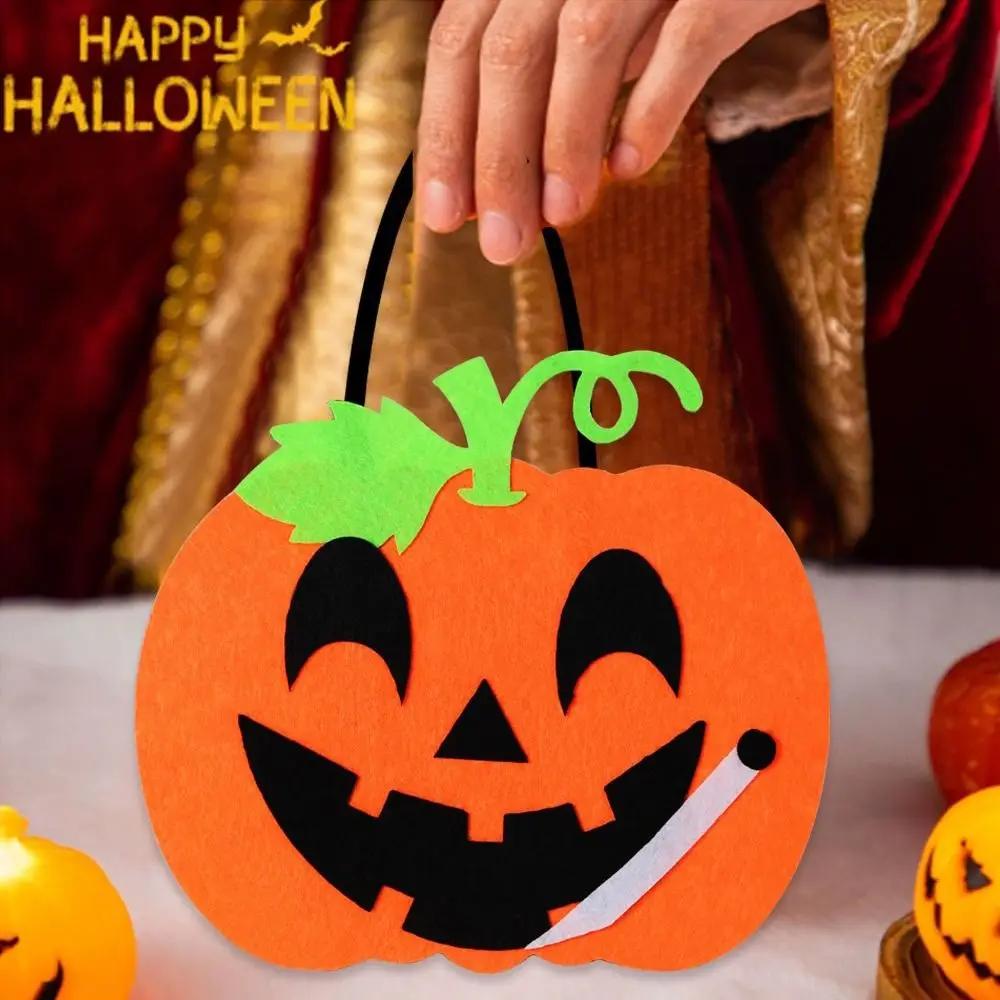 Felt Material Halloween Trick-or-Treat Bag Non-woven Tote Handheld Size Halloween Gift Bag Stereo Design Classic Elements — купить товар онлайн с бесплатной доставкой по всему миру!