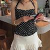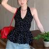Женские топы в горошек с вырезом халтер, низким вырезом, на завязках, с оборками, без спинки, без рукавов, облегающие, модные, уличные, универсальные, жилет