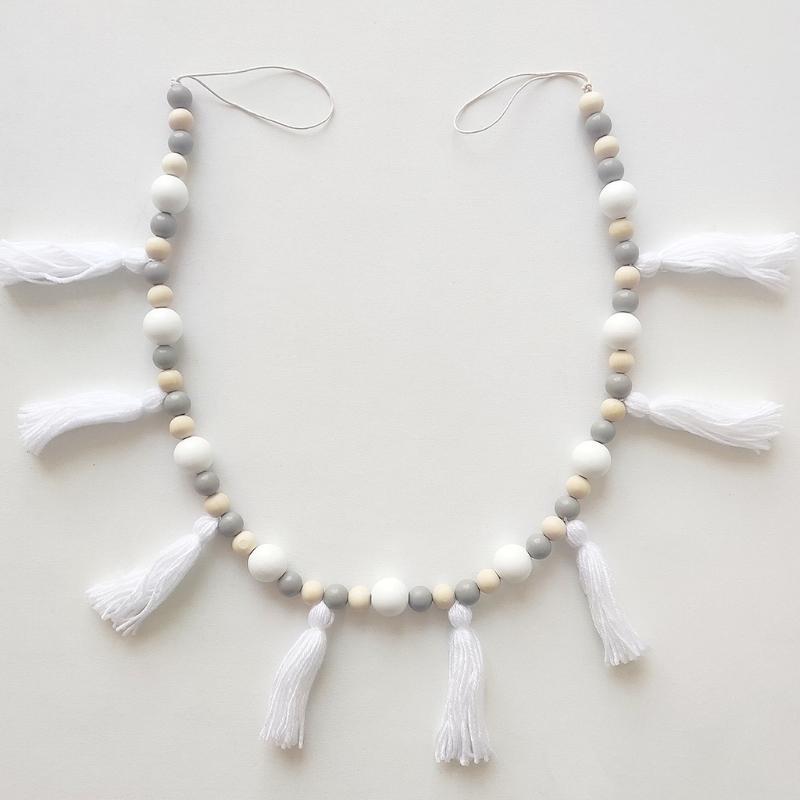 Nordic Cotton Rope Wooden Bead Garland with Tassel Wall Hanging Nursery Props Ornament Kids Baby Room Decor — купить товар онлайн с бесплатной доставкой по всему миру!