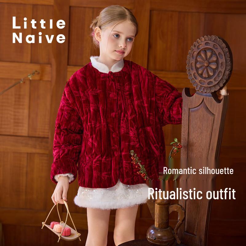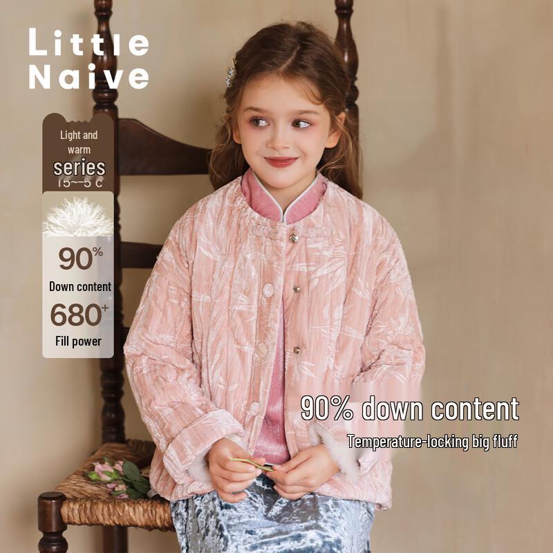 Little Naive Girl's Chinese Style Bamboo Embossed Down Jacket