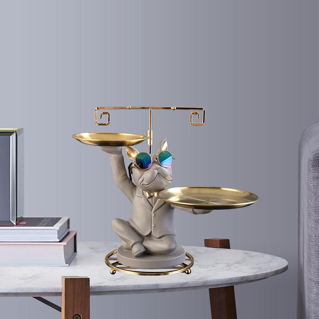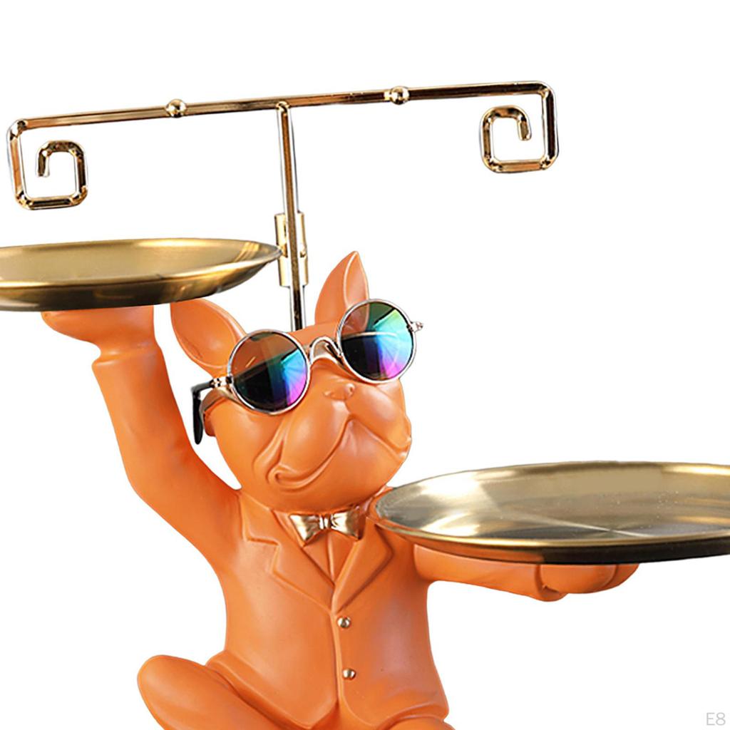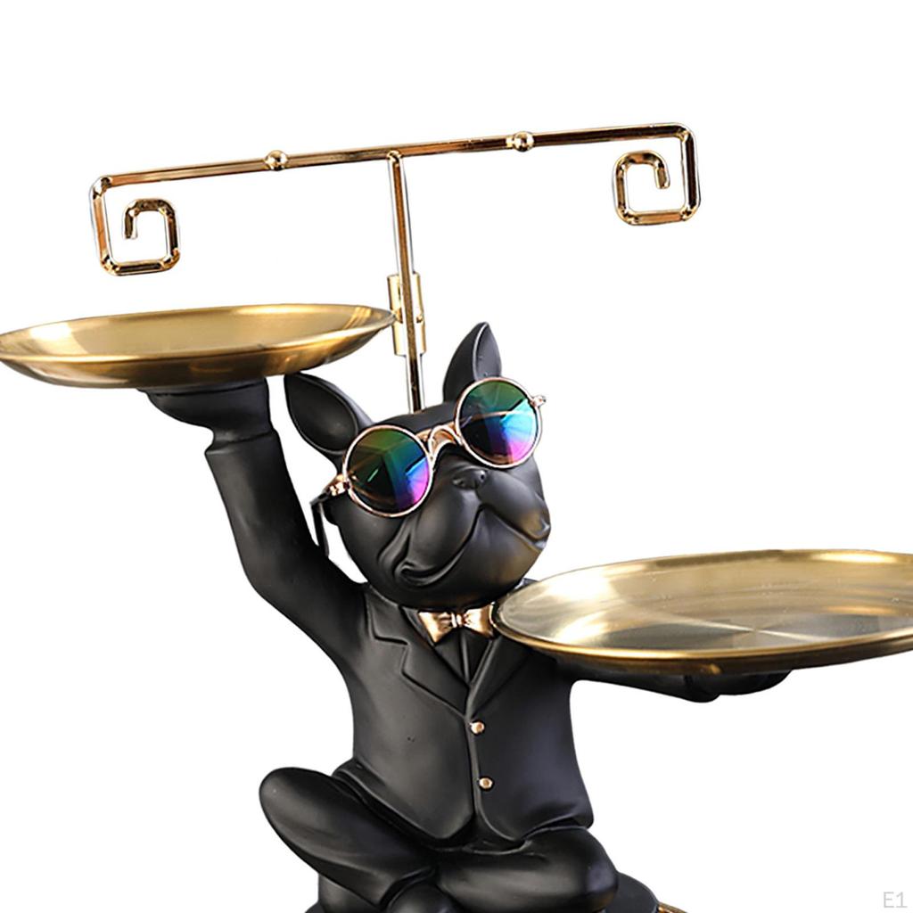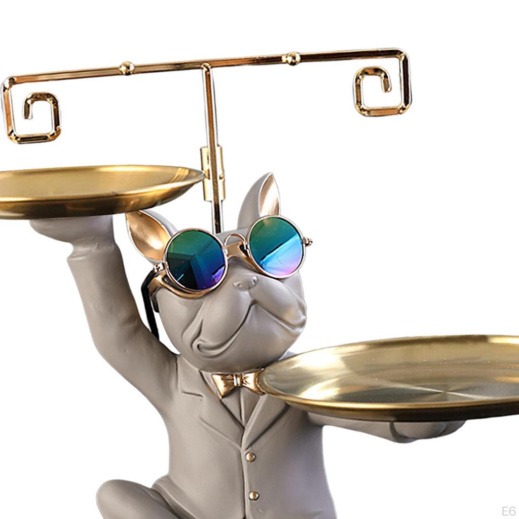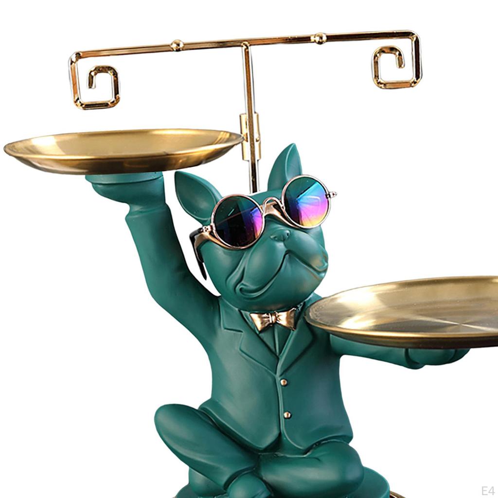 - Статуя французского бульдога: Наша скульптура собаки изображает бульдога-дворецкого в солнцезащитных очках, держащего 2 подноса. Креативная и декоративная, идеально подходит для современного домашнего декора.