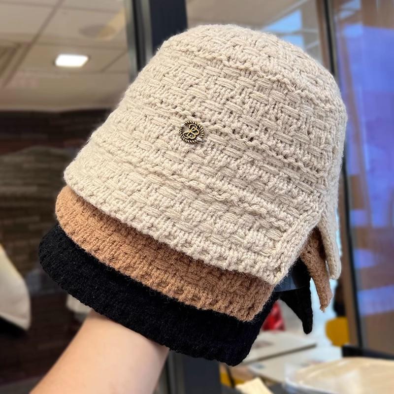 Весенний и осенний дышащий универсальный женский маленький вязаный панама-ведро с ажуром
