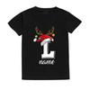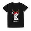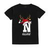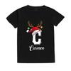 Рождественская детская футболка с инициалом и именем, детская одежда, топы для мальчика и девочки, наряды для рождественской вечеринки, детская праздничная футболка