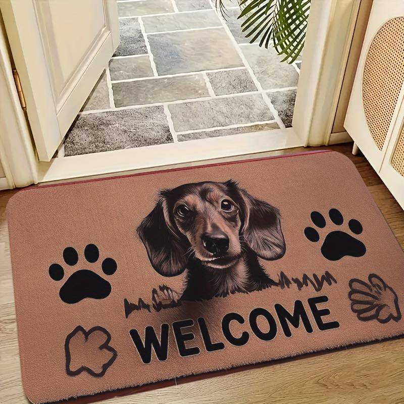 1 piece Dachshund printed "welcome" text floor mat, non-slip machine washable indoor and outdoor door mat
