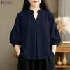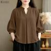 ZANZEA Женская повседневная однотонная блузка с V-образным вырезом и рукавом 3/4