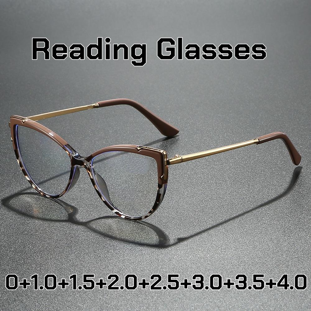 Новые Винтажные Очки для Чтения Кошачий Глаз Унисекс Ультралегкая Металлическая Рамка Защита от Синего Света Очки для Пресбиопии Женские Популярные Очки