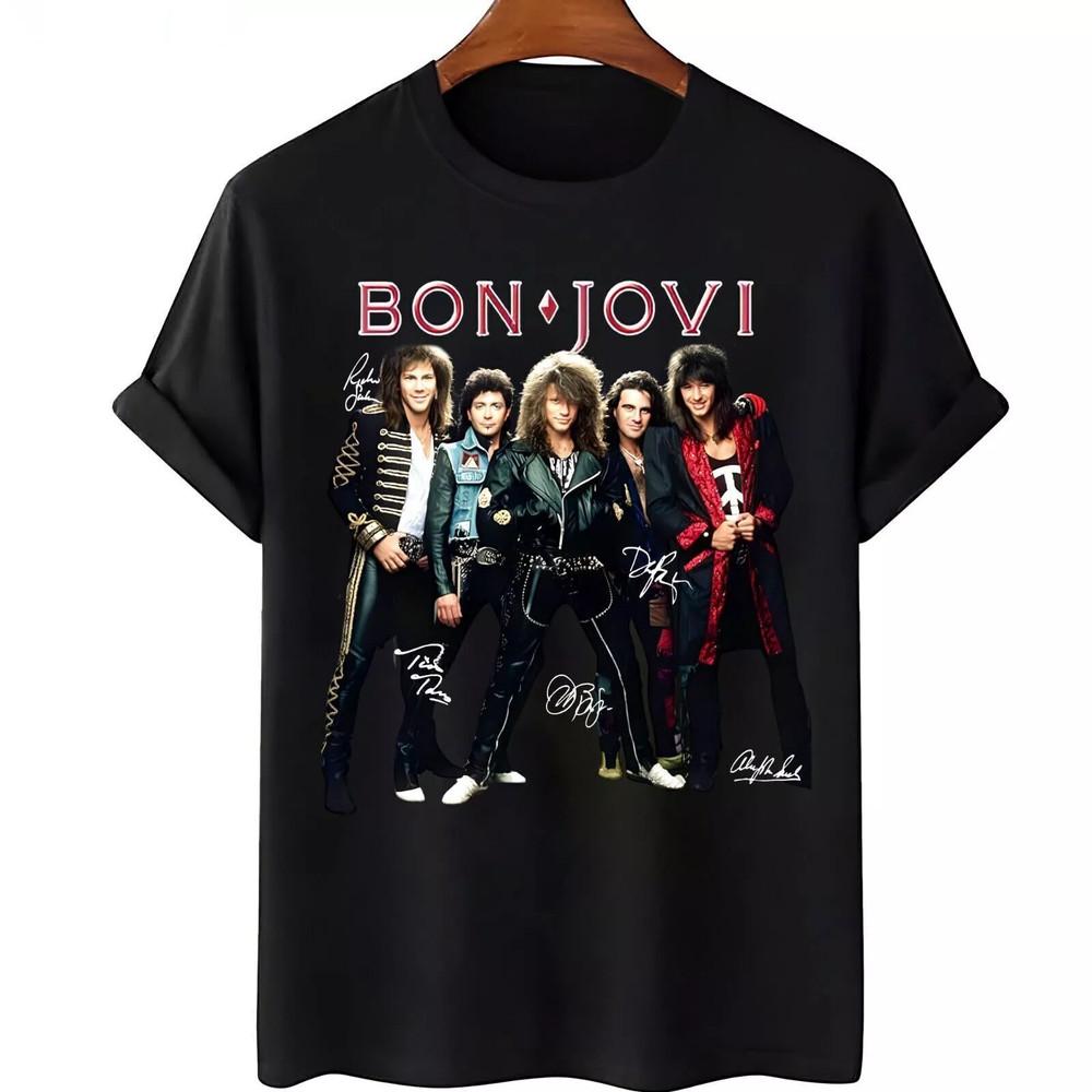 Черная Хлопковая Футболка с Автографами Участников Группы Bon Jovi Полный Размер S-5XL Унисекс Футболка