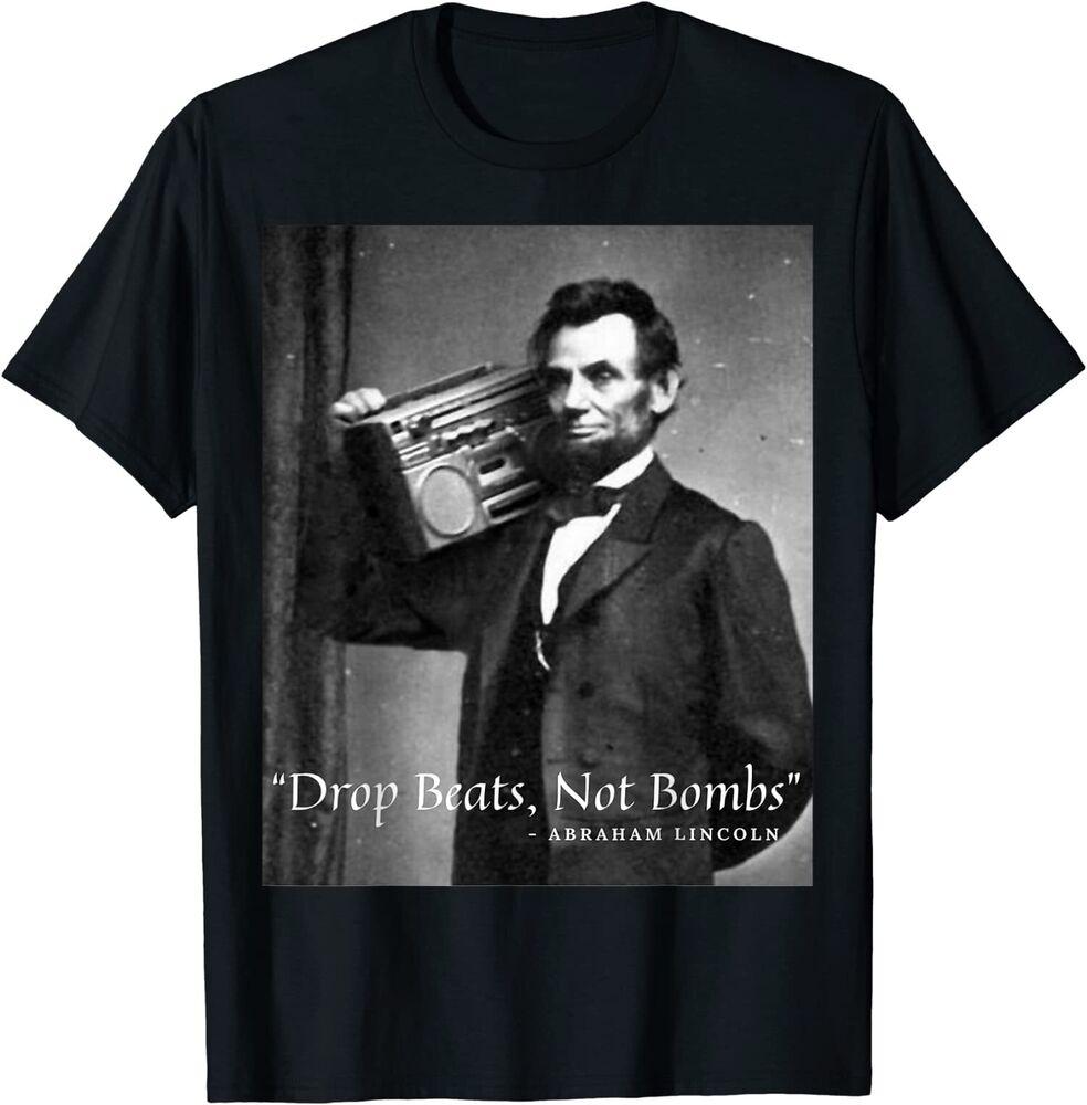 НОВЫЙ ОГРАНИЧЕННЫЙ Drop Beats Not Bombs Авраам Линкольн Смешная Честная Эйби Футболка Унисекс Футболка