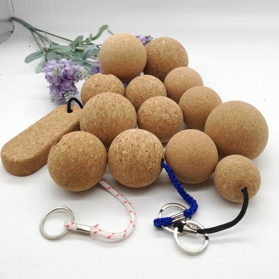 2Pcs Floating Keyrings Decorative Multifunction Special Wooden Cork Ball Key Rings Decor for Household