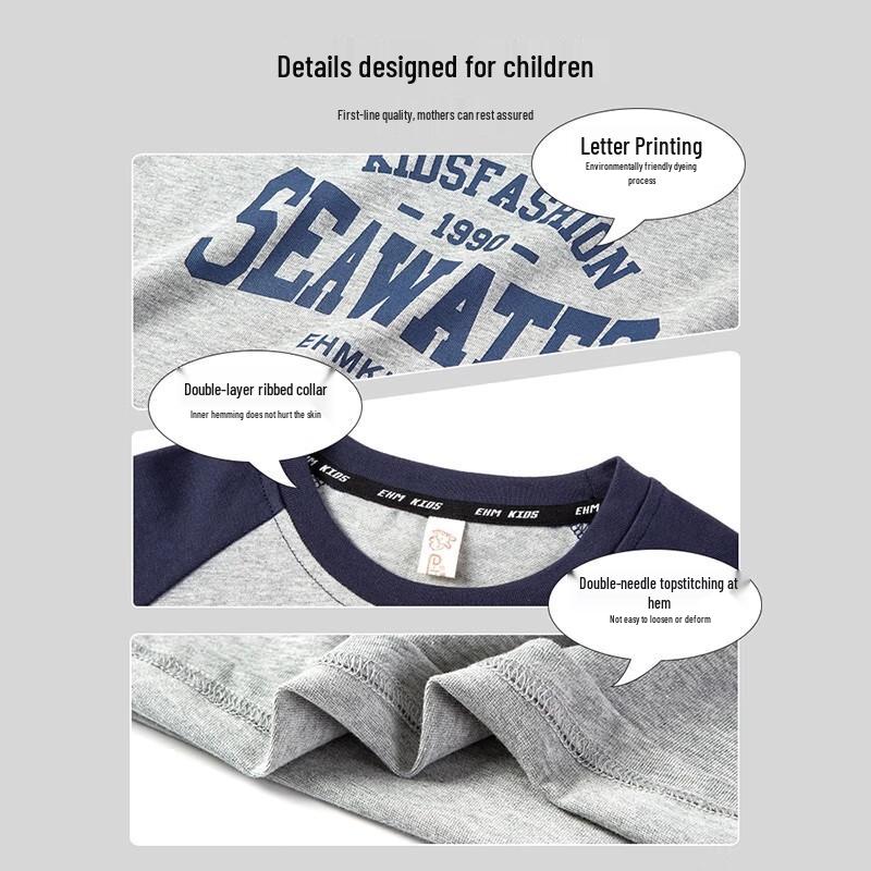 Little Elephant Hamm Boys' 5A Antibacterial Pure Cotton Long Sleeve T-Shirt