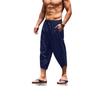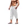 Мужские летние однотонные брюки-капри, шорты-шаровары, мужские укороченные брюки с эластичным поясом и шнурком, мешковатые спортивные штаны длиной 3/4