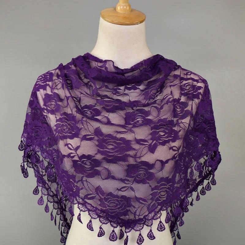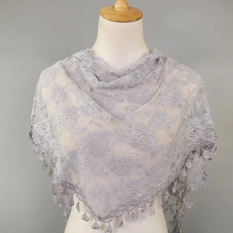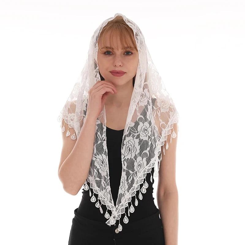 Модная Кружевная Однотонная Треугольная Бахрома Полотенце Женская Фата Однотонная Цветочная Треугольная Шарф Молитвенный Хиджаб 160*80см