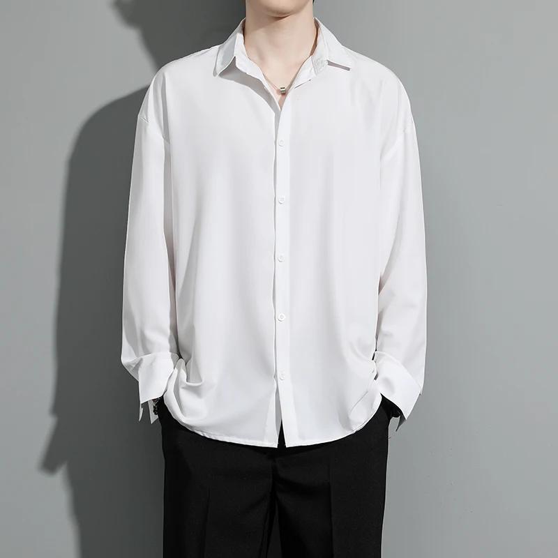 Мужская черно-белая рубашка на весну-лето 2026 года, мужские рубашки из ледяного шелка, мужская повседневная рубашка свободного кроя, мужская рубашка с длинным рукавом, корейская рубашка — купить товар онлайн с бесплатной доставкой по всему миру!