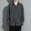 Мужская черно-белая рубашка на весну-лето 2026 года, мужские рубашки из ледяного шелка, мужская повседневная рубашка свободного кроя, мужская рубашка с длинным рукавом, корейская рубашка