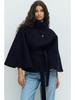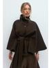 Женское короткое шерстяное пальто-накидка 2025 года с воротником-стойкой и поясом — купить товар онлайн с бесплатной доставкой по всему миру!