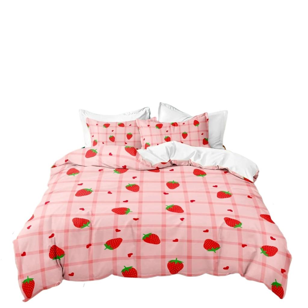 Сладкая клубничная коллекция постельного белья Пододеяльник для детей, подростков Покрытие для одеяла Декор спальни Розовое покрытие для одеяла 3 предмета Полный размер