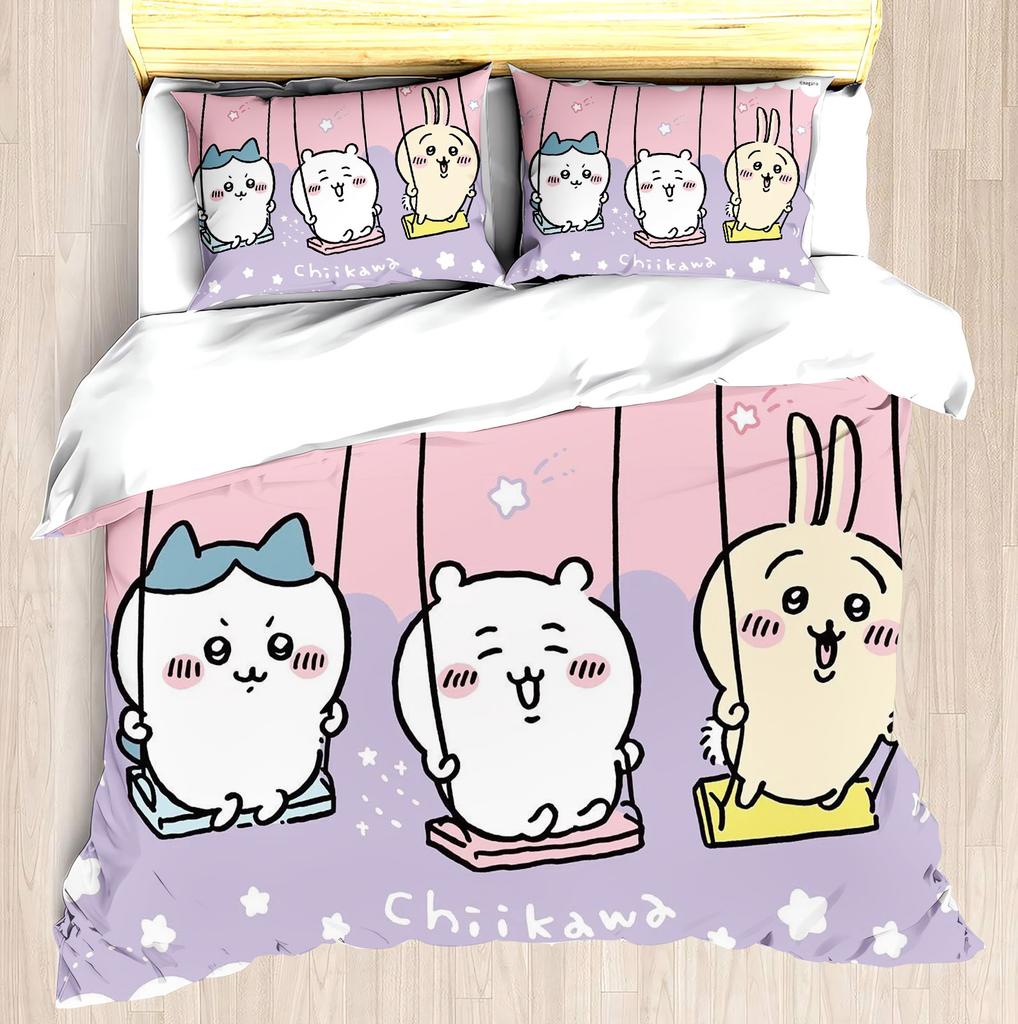 Набор постельного белья CHIIKAWA Пододеяльник Miniso - Современный принт для дома Детская комната Совместный бренд Периферийный набор для матраса и кровати 3 предмета