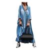 Винтажное женское кружевное платье с V-образным вырезом и рукавами 3/4, большим подолом и кисточками, свободное макси-джинсовое платье