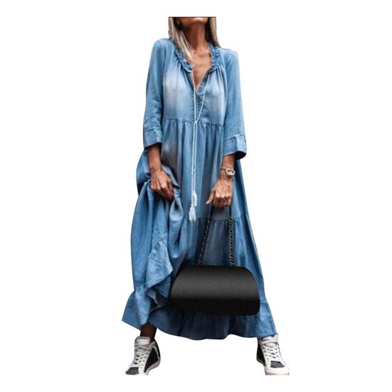 Винтажное женское кружевное платье с V-образным вырезом и рукавами 3/4, большим подолом и кисточками, свободное макси-джинсовое платье — купить товар онлайн с бесплатной доставкой по всему миру!