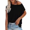 Women Summer Solid Color O-neck Off Shoulder Short Sleeves T-shirt with Pocket