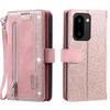 For OnePlus 15R 5G Case 9 Card Slots Zipper Wallet PU Leather Phone Cover with Wrist Strap