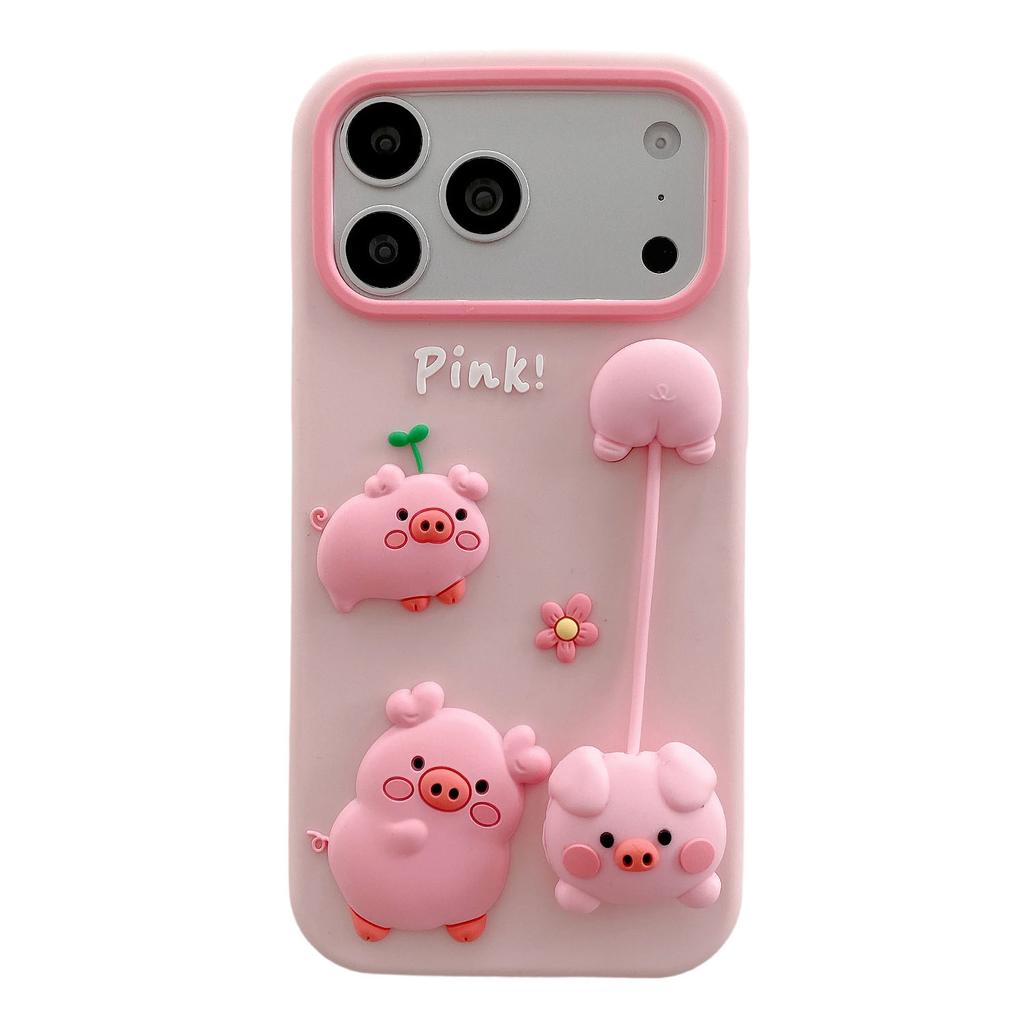For iPhone 17 Pro Max Silicone Case Cute 3D Cartoon Pig Pendant Shockproof Phone Back Cover — купить товар онлайн с бесплатной доставкой по всему миру!