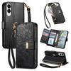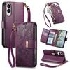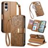 Для Samsung Galaxy S25 Чехол-бампер Цветочный узор с листьями Множество слотов для карт Молния Кожаный чехол для телефона с ремешком на запястье