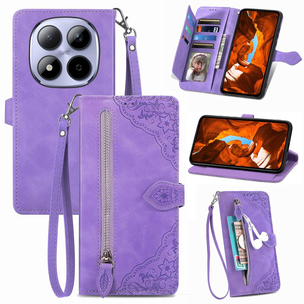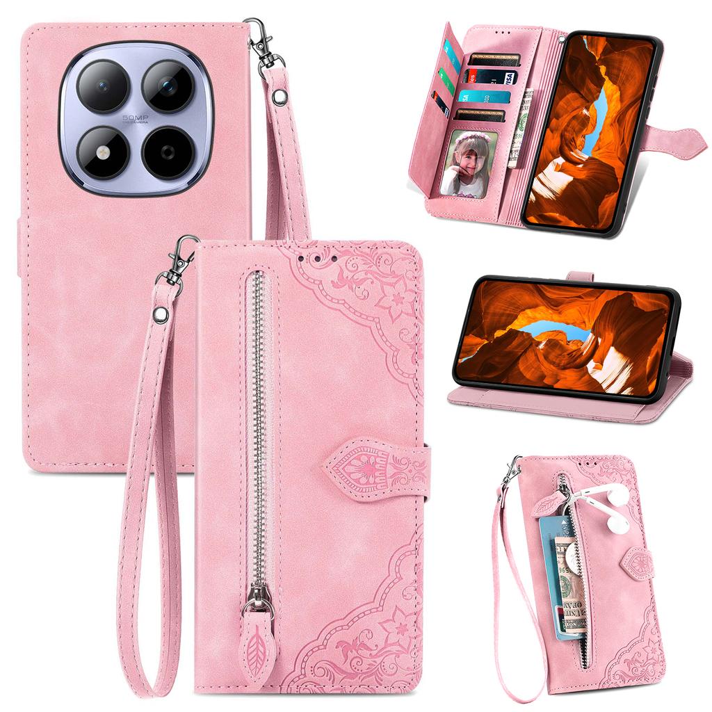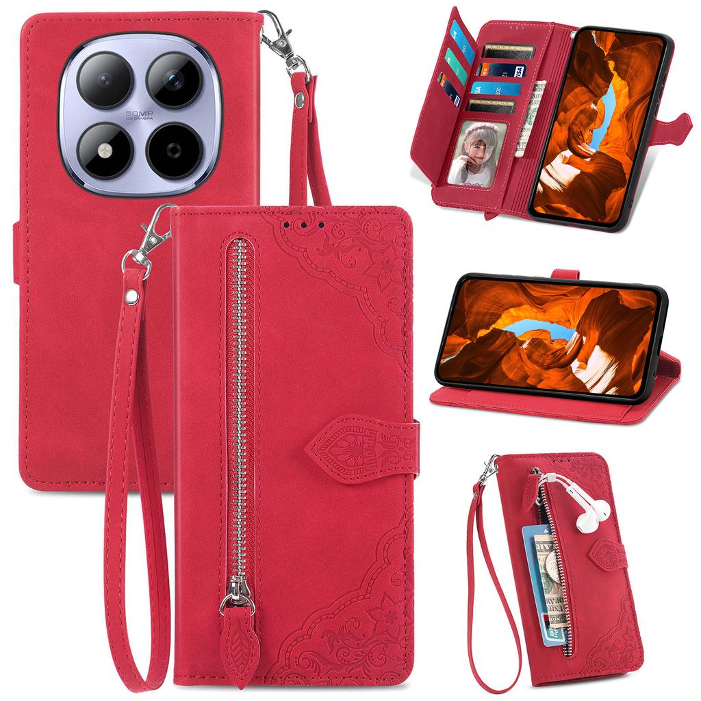 Для Xiaomi Redmi Note 15 Pro 4G (Глобальный) Чехол-кошелек на молнии с ремешком и цветочным принтом из искусственной кожи для телефона
