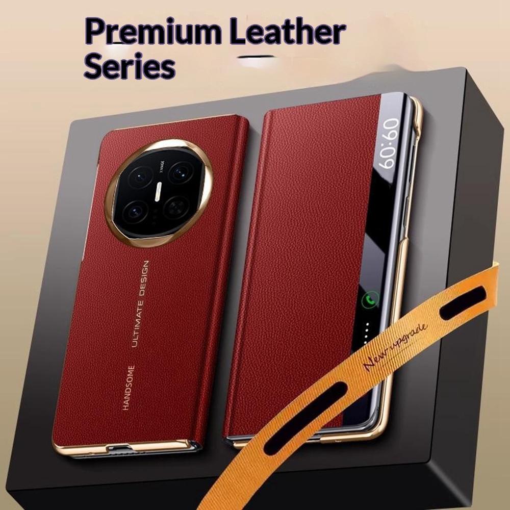 Для Huawei Mate X7 Чехол Кожа с текстурой личи Смарт-чехол-книжка с окошком Полная защита Автоматический сон/пробуждение