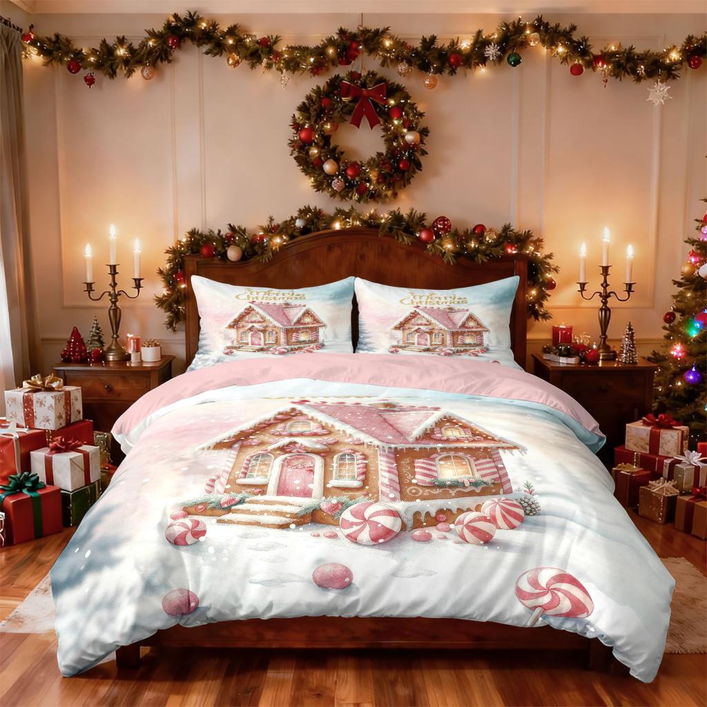 3 шт. розовый романтичный рождественский коттедж принт "Счастливого Рождества" постельное белье без хлопот многоразмерный спальный комплект праздничное украшение для спальни