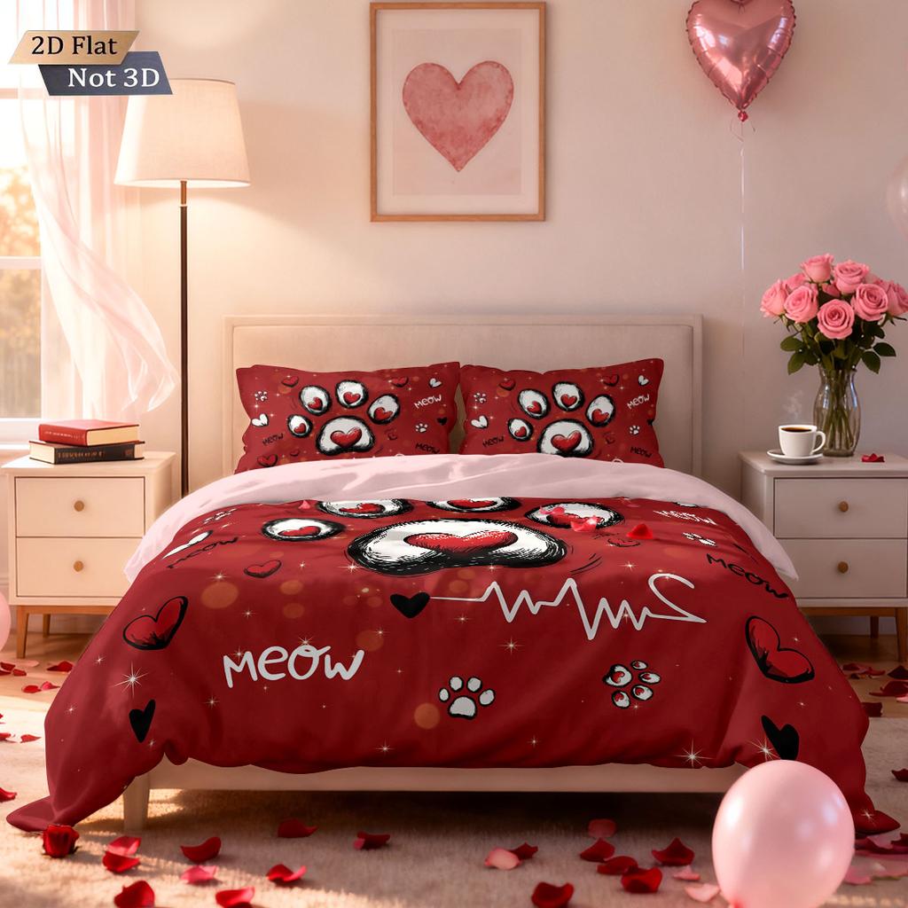 3 шт. Набор постельного белья с принтом красной кошачьей лапы ко Дню святого Валентина, Разные размеры, для спальни, общежития, кровати, Праздничное украшение, Машинная стирка