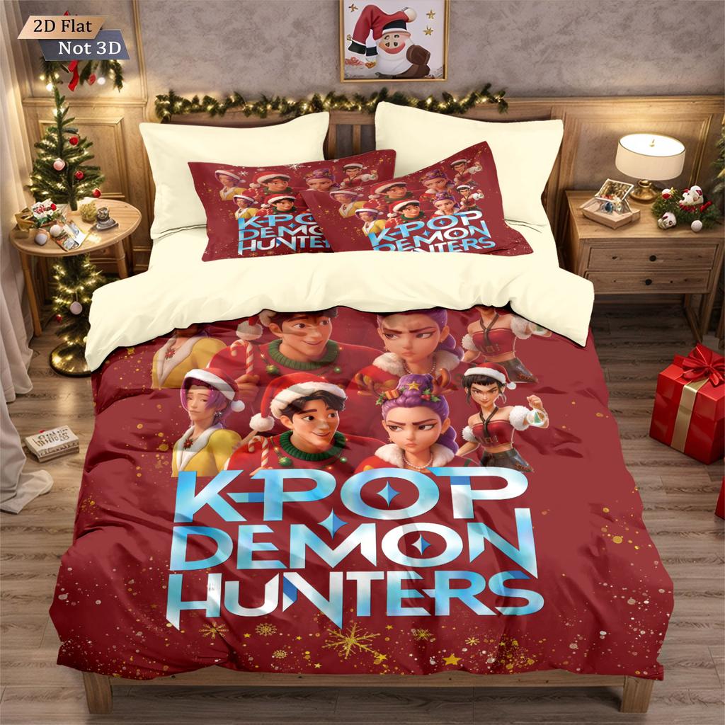 3pcs K-Pop Demon Hunters printed coreless down comforter set multi size bedroom bedding decoration soft and machine washable