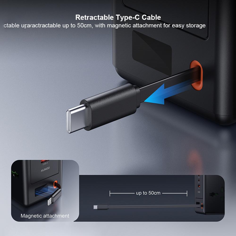XUNDD XDCH-123 PD 30W Universal USB Power Strip with Retractable Cable Desktop Charging Station, 2 AC + 3 USB-C + 1 USB-A